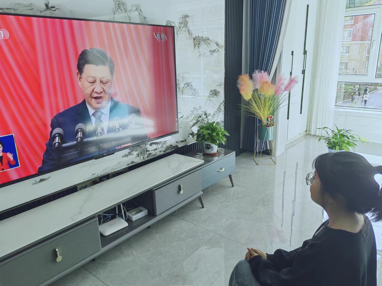 2019级心理学1班叶嘉璇同学分享感受:今天上午,习近平总书记用铿锵有力的话语总结了过去中国人民在中国共产党的领导下所做出的非凡成就,以掷地有声的信念表达了中国共产党在新时代带领中国走中国式现代化道路,夺取新的伟大胜利的决心。作为一名新时代大学生党员,我们应该积极响应总书记的号召,投身到伟大事业中去,不断打开事业发展的新天地!