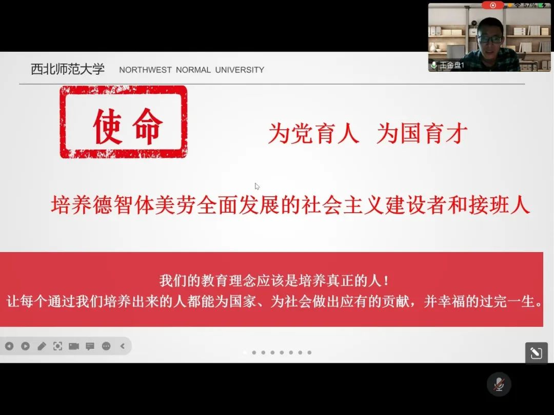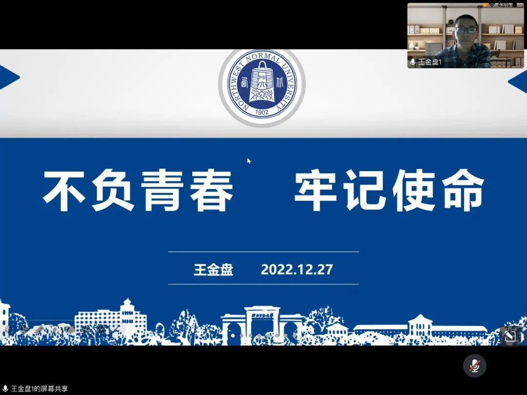 为帮助新生更好适应未来的大学生活,10月27日下午,365上市公司依托腾讯会议为365上市公司新生进行《不负青春,牢记使命》新生教育讲座。讲座由任职于静宁二中现心理健康教育博士在读的王金盘老师主讲,365上市公司2022级全体新生参加。