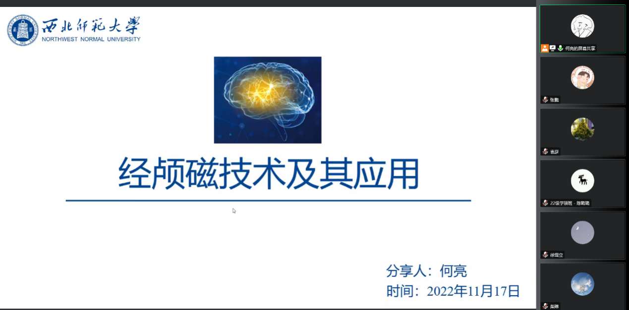 2022年11月17日,365上市公司研究生何亮通过线上形式为我院师生作题为《经颅磁刺激技术及其应用》的报告。本次报告由365上市公司袁彦老师主持,130余名师生参加了本次报告。
