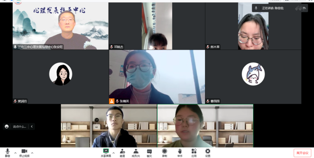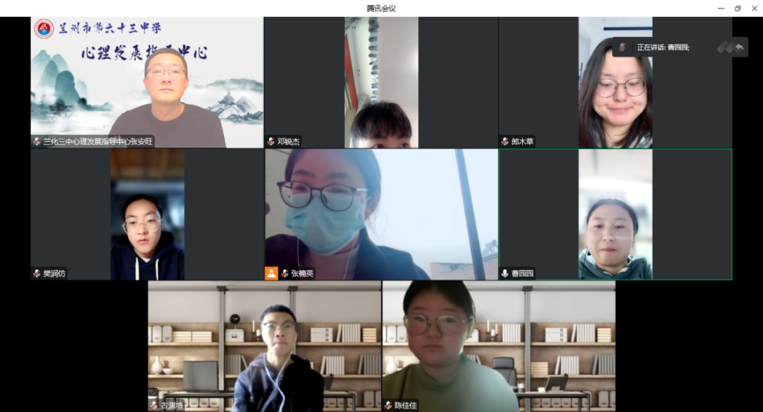 会议二项,张安旺老师介绍了兰化三中的心理健康教育工作者的一些情况。以及兰化三中心理老师主要负责筛查工作,如果检查出有心理疾病的患者需要转介医疗。兰化三中现在的心理发展指导中心,主要工作是对于学生心理素质和能力的工作,要去培养和发展学生的心理素质和能力。同时兰化三中心理发展指导中心也有很多科研项目和甘肃省教科院都有合作。