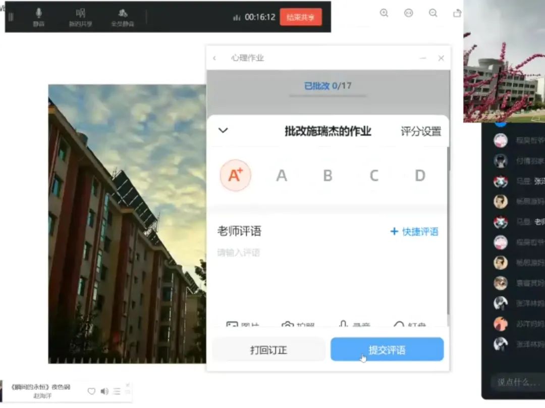 在课程设计方面,能感受到课程设计是层层递进的,观察窗外之景,从景物感受生活,从生活中找到自己。在主题选择方面,是非常符合当下学生们所处的一个状态,居家学习可能不在状态、空虚无聊,窗外之景、窗外的生活、同学们的分享交流都能给彼此带来一些能量,找对状态,对生活充满信心。董老师的授课也让我停下来看到了窗外的景色,好好感受当下的生活。这是一次很棒的体验,期待之后参与到更多的学习活动中,积累经验,为日后走上工作岗位打好基础!