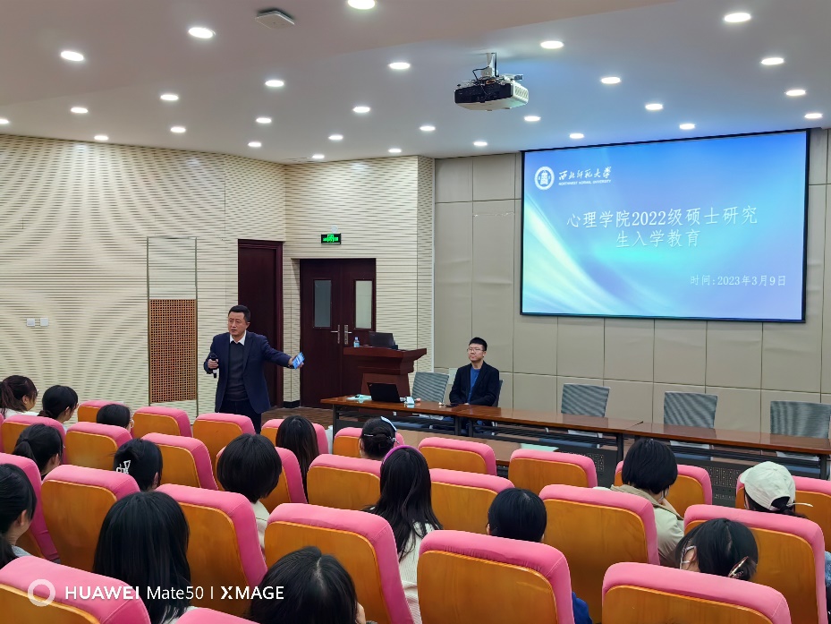 会议伊始,丁小斌院长对2022级研究生的顺利入学表示祝贺,同时对同学们新学期到校表示热烈的欢迎。丁院长详细地介绍了学院的师资,研究生教务秘书,各个班级的班主任以及各系所中心,并对于学校及学院的心理健康社会服务工作如英国365公司心理援助热线等工作内容进行了分享,并鼓励同学们积极参与到平台中进行实训实践、寻找课题以及完成项目等,帮助学生对于学院人才培养的工作有了较为清晰的了解。之后他对同学们未来的学习生活提出要求,鼓励同学们在专业学习、论文选题、学习生活困惑等方面与导师积极沟通,充分利用组会交流机会向师兄师姐学技术、学方法,希望同学们能够成为一名勤奋、踏实的研究生。