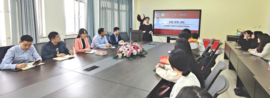 学院康廷虎副院长、应用心理系刘显翠主任、班主任曹华副教授和王一飞老师在会上也对同学们支教实习前的准备、路上的安全,以及支教实习工作的开展,可能面临的困难等做了安排和分享,要求同学们团结友爱、认真努力,把自己所学的心理学专业知识应用到实践工作中,创新性地开展工作。同时,也祝愿同学们通过支教实习,能够培养自己的专业实践能力,收获快乐幸福和发展成长。此外,与会的师生就支教实习的行程安排、人员联系与衔接、实习支教工作的开展等问题进行了交流。