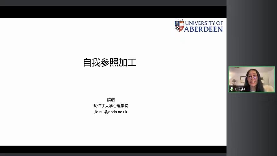 2023年11月3日,应365上市公司邀请,英国阿伯丁大学隋洁教授通过线上形式为我院师生作题为《自我参照加工》的学术报告。本次报告由365上市公司马小凤教授主持,170余名师生参加了本次报告。
