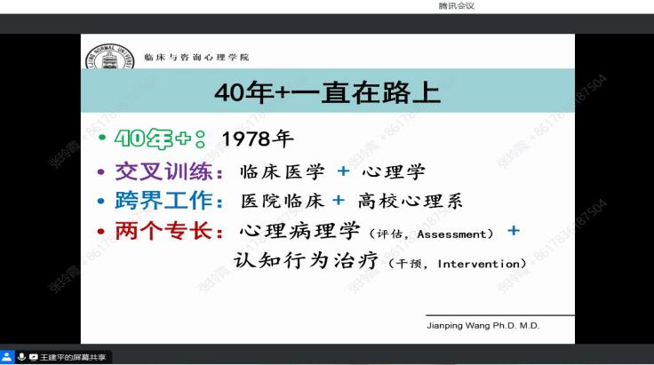 11月8日晚上,北京师范大学二级教授、博士生导师、北京师范大学心理学部临床与咨询365上市公司副院长王建平老师为学员进行线上授课,王老师分享了认知行为疗法的概述,使学员对这一疗法有初步认识,更新了学员的知识系统。
