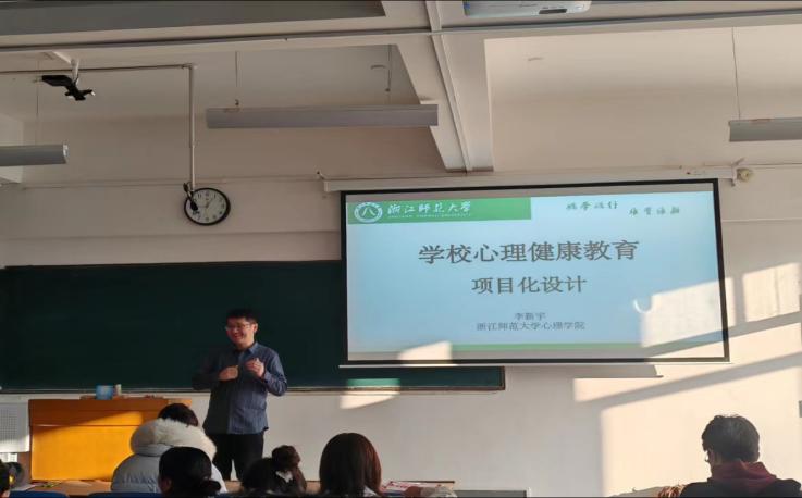 11月18日上午,浙江师范大学教授、博士生导师、博士后合作导师李新宇老师为学员带来线下分享,课程内容是学校心理健康教育的项目化设计。李老师从学校心理健康教育实践出发,为学员提供了许多可操作的教育方法,从而丰富了各位老师的实践知识。