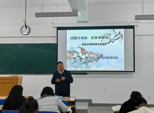 12月2日上午,滁州市教育体育局心理健康教育教研员、高级教师、滁州市第六批骨干教师王标老师为学员进行分享。王老师用自己的亲身经历为学员展示了滁州市学校心理工作的开展,加强了王老师与兰州市骨干教师工作经验的交流,开拓了各位学员的学习视野。下午,浙江省特级教师、苍南县教师发展中心正高级心理健康教育教师林甲针老师为学员进行线下课程的讲授,林老师讲课风格幽默,注重与各位学员的互动,共同探讨了以问题为导向、任务来驱动为题的心理教师的专业成长。