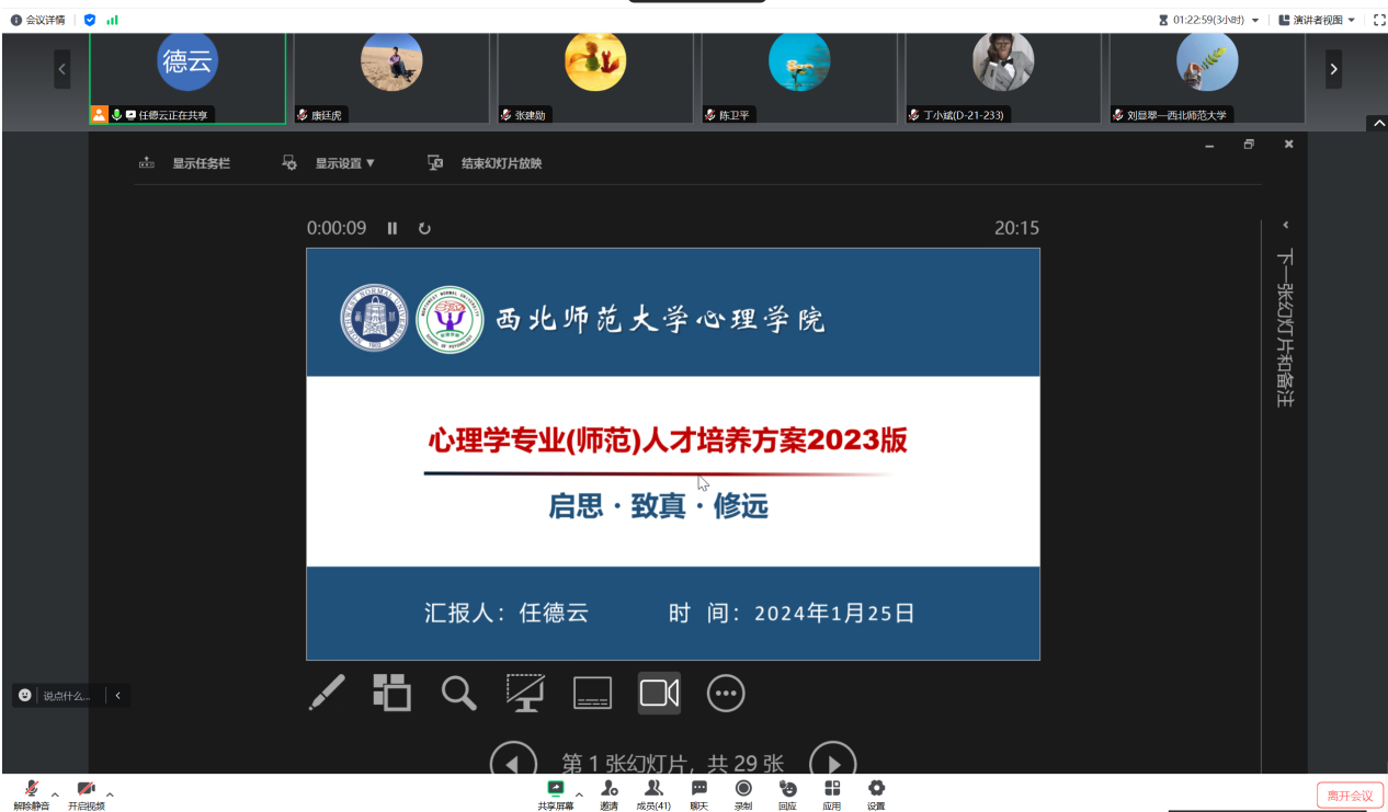 2024年1月25日,365上市公司以线上方式组织了2023版本科生人才培养方案的修订论证会。活动邀请了天津师范大学心理学部部长杨海波教授,学校教学督导杨玲教授,学校教务处王刚副处长指导方案的修订论证。学院党委书记杨杰、院长丁小斌、副书记蒋玲、副院长马小凤、学院学术委员会主任周爱保教授、学院教学督导舒跃育教授及学院全体教师、学生代表45人参加活动。活动由学院副院长康廷虎主持。