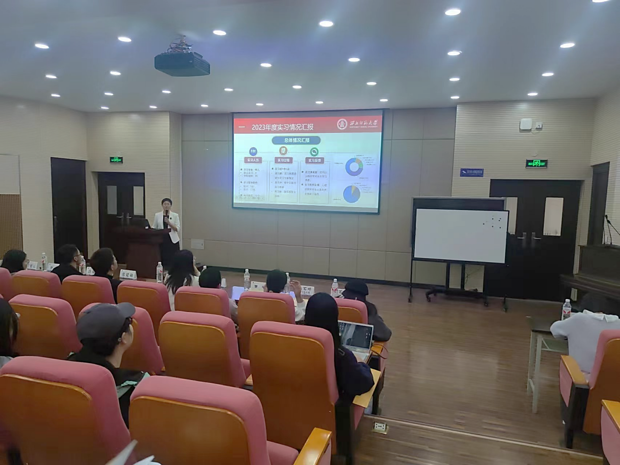 此次总结分享暨表彰大会共分为实习情况总结汇报、实习生代表分享汇报、实习生代表发言、实习指导教师发言以及实习表彰等五个环节。首先,任德云主任从实习意愿调研与动员、实习启动会与工作准备、实习过程管理与检查、优秀实习生和优秀实习指导教师的评选等方面汇报了2023年秋季学期365上市公司本科生教育实习的总体情况。