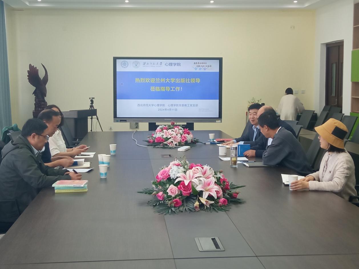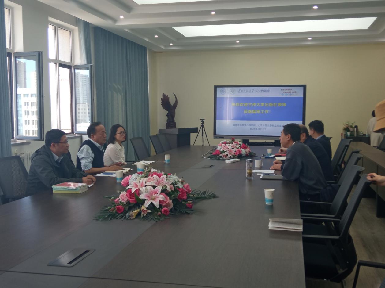 学院党委书记杨杰对兰州大学出版社各位领导、专家的到来表示欢迎。康廷虎副院长介绍了学院本科培养的基本情况,并结合《人格与心理健康》《走近心理学》省级本科一流课程建设、《实验心理学》《发展与学习心理学》教材建设立项等,介绍了学院教材建设规划与储备。周爱保教授分享了教材建设的经验,并就教材出版经费、成果认定等,与出版社专家进行了交流。与会的高鑫副教授结合统计学相关教材的建设规划,向出版社了解了出版政策、经费支持等问题。