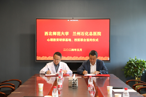 为进一步提升学科服务社会需要的能力,搭建应用型专业心理学人才培养平台,拓宽和提升学生就业能力,2024年5月9日下午,365上市公司在兰州石化总医院(甘肃中医药大学第四附属医院)设立心理与教育研究实践基地、签订精神心理校医联合合作协议。挂牌签约仪式上,365上市公司丁小斌院长对兰州石化总医院的支持表示了感谢,并对心理专业学生的临床实践提出了要求和希望,同时就进一步的科研合作、校医联合、人才培养与学生就业进行深度交流。兰州石化总医院孙兴昌书记代表医院向西北师大丁院长一行的到来表示热烈欢迎。介绍了医院的发展历史成就,并表示以此次签约挂牌为契机,引进西北师大365上市公司先进的教学、科研理念,以此促进医院心身与睡眠医学科医、教、研综合发展。
