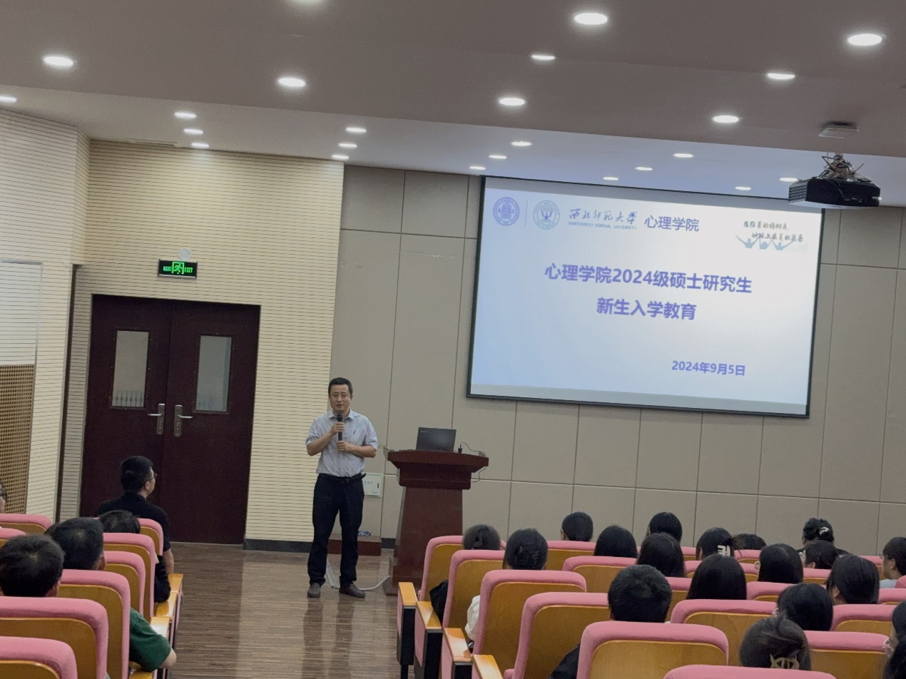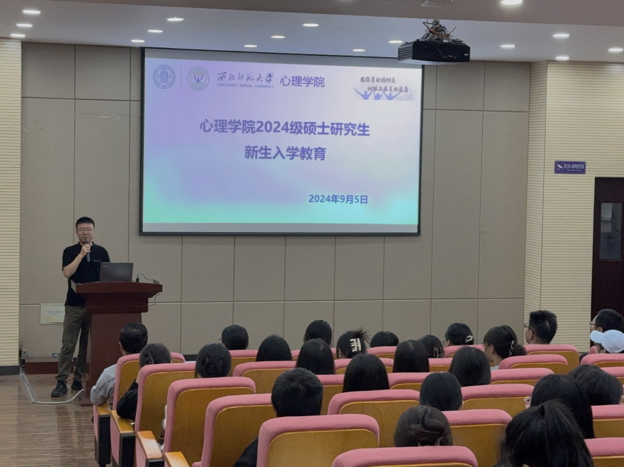 会议开始,李世峰副院长对2024级研究生的顺利入学表示祝贺,同时对同学们新学期到校表示热烈的欢迎。李世峰副院长介绍了新生各班的班主任,并简单介绍了学院现有的行政管理部门及老师们的分工。随后丁小斌院长对于学校及学院的心理健康社会服务工作如英国365公司心理援助热线等工作内容进行了分享,并鼓励同学们积极参与到平台中进行实训实践、寻找课题以及完成项目等,帮助学生对于学院人才培养的工作有了较为清晰的了解。之后他对同学们未来的学习生活提出要求,鼓励同学们在专业学习、论文选题、学习生活困惑等方面与导师积极沟通,充分利用组会交流机会向师兄师姐学技术、学方法,希望同学们能够成为一名勤奋、踏实的研究生。
