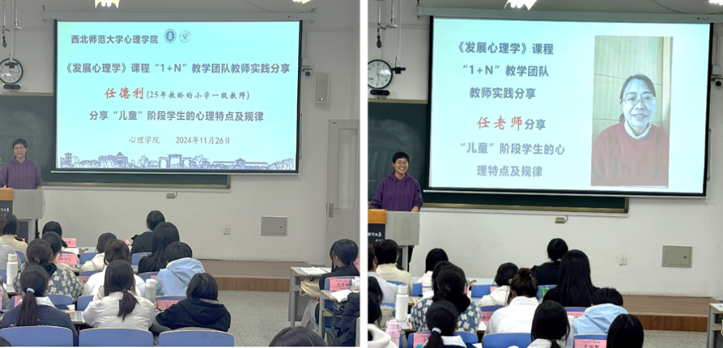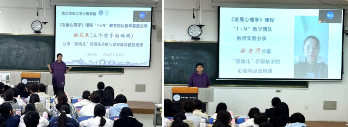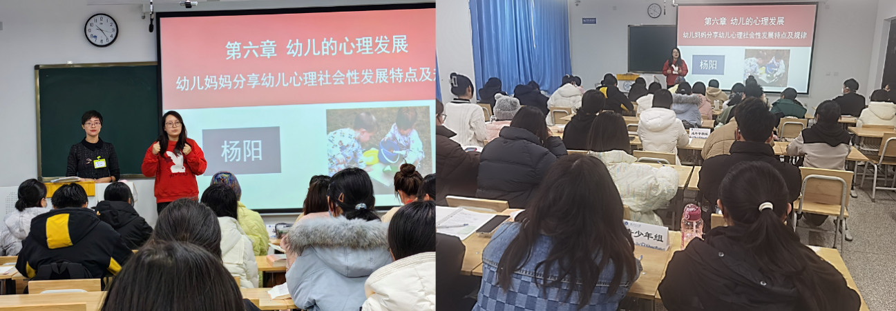 3-6、7岁为幼儿发展阶段,为了更好地了解幼儿阶段孩子在实践中的主要表现,2023年11月24日,任德云老师邀请了学院杨阳副教授进入课堂分享幼儿阶段的心理特点和规律。杨老师既是发展心理学教学团队的主讲教师,也是一位幼儿时期的妈妈,杨老师将理论与实践相结合,给大家带来一场实践经验的盛会。