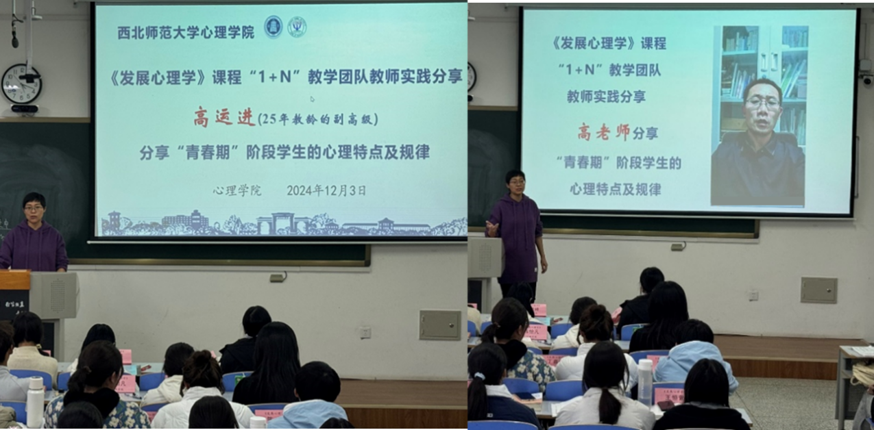 《发展心理学》是心理学类学生的专业必修课,通常开设于大一第一学期。由于该课程设计自受精卵至衰亡的毕生发展过程,而学生与教师都无法经历和体验所有阶段,导致理论知识与实践知识脱节,存在学生体验感差,学完易忘的教学痛点。为了解决这一教学痛点,任德云老师创新性地提出了基于OBE理念的立体化“1+N”教学合伙人模式,即1师主导N师参与,打造多层次立体化团队结构,让更多具备各年龄阶段实践经验的人员参与到教学中来。N位合伙人包括:孕妇、婴儿父母、幼儿园教师、小学教师、中学教师、高中教师、中年人和老年人代表。讲授到不同年龄阶段时,会连线该阶段的合伙人在线上与学生见面,该种模式的创新性地将知识融入立体化的现实实践,体现 了以学生为中心,基于学生发展需要的教学理念。