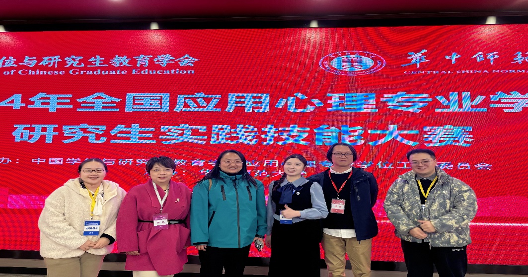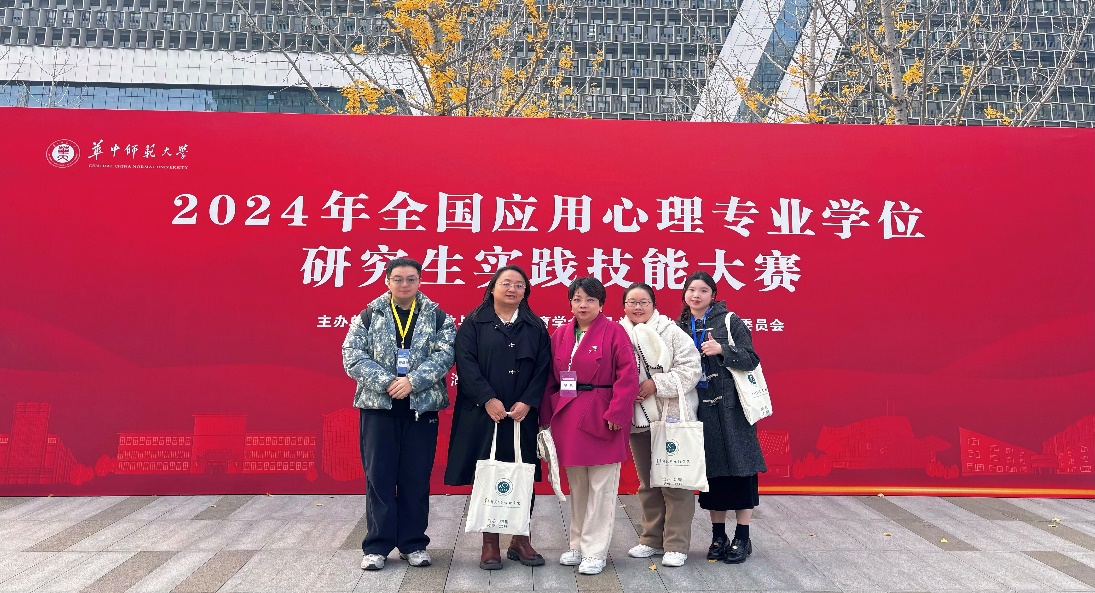 2024年12月7-8日,由全国应用心理专业学位研究生教育指导委员会指导、中国学位与研究生教育学会主办的2024年全国应用心理专业学位研究生实践技能大赛在华中师范大学举行。我院姜艳斐副教授指导的黄丽萍同学获得心理咨询面谈技能比赛二等奖;吴博副教授指导的汪苗毅同学获得心理咨询面谈技能比赛二等奖;周爱保教授指导的黄欣悦同学获得应用心理教学案例比赛二等奖;本次比赛由姜艳斐副教授和雍琳副教授带队参加,张继元老师受邀担任比赛评委。