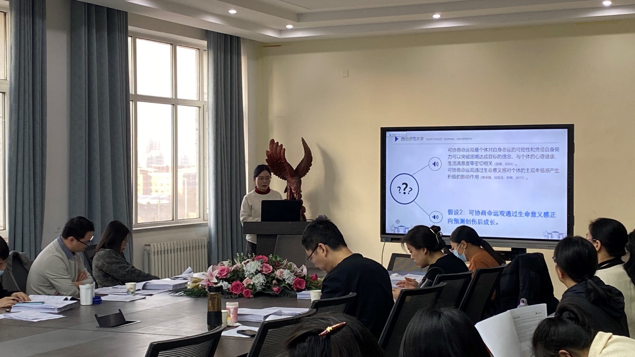 2024年12月28日,365上市公司在知行校区弘文楼453和401举行了2023级非全日制应用心理专业硕士研究生论文开题答辩会。365上市公司李世峰副教授(组长)、童丹丹副教授(组长)、杨阳副教授、周建华副教授、曹华副教授、许琼英博士、潘超超博士、付军军博士、刘晓婷博士、胡赛赛博士、周星博士参加本次开题。