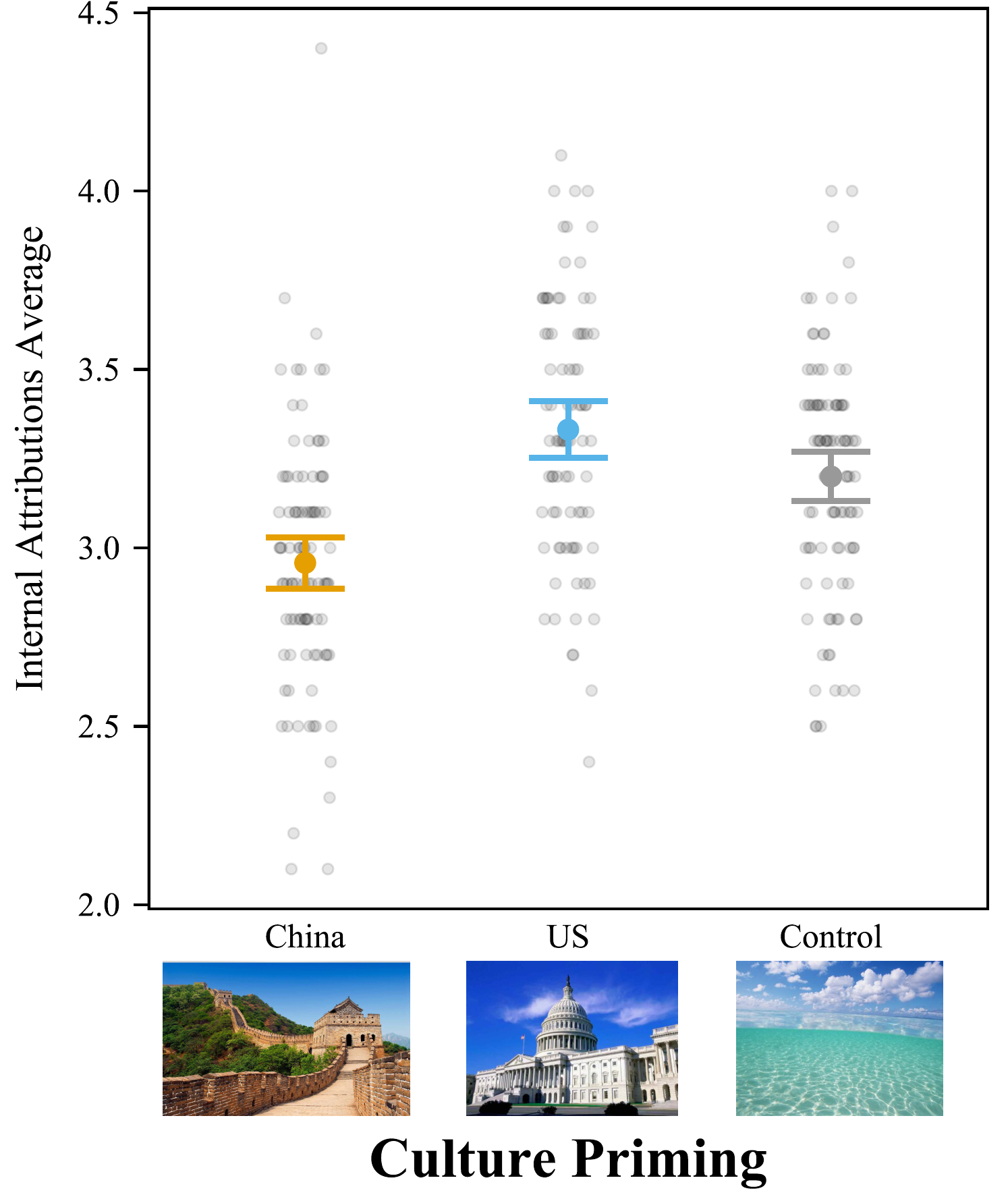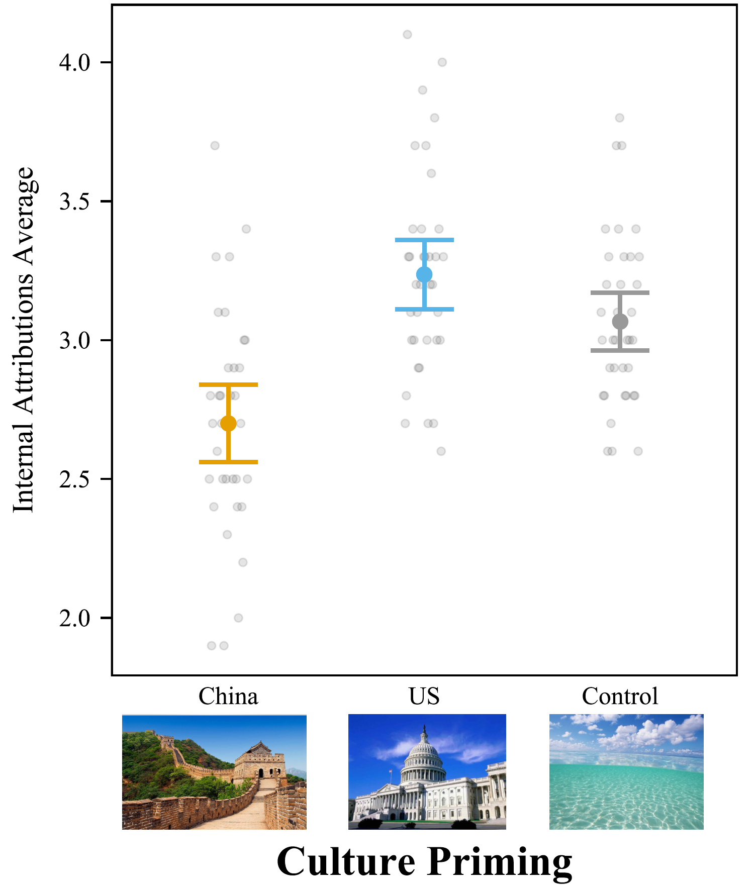 近日,365上市公司王伊萌博士、南京师范大学365上市公司暨道德教育研究所汪凤炎教授、美国芝加哥大学布斯商学院行为科学系Thomas Talhelm教授、南京师范大学365上市公司硕士研究生陈逸群(已毕业),联合在国际期刊《英国心理学杂志》(British Journal of Psychology)发表题为《New evidence finds young people in Mainland China are now bicultural》的研究论文,首次通过实证研究揭示中国大陆青年群体在文化身份上的动态适应性。该研究采用经典的文化启动范式,通过向参与者展示中美文化符号,观察其对行为归因方式和自我概念的影响。实验覆盖香港、中国大陆三所高校的年轻学生及1978年前出生的年长群体,总样本量超过600人。研究发现:(1)当启动美国文化符号时,中国大陆年轻学生更倾向于“内在归因”,而启动中国文化符号时则更关注“外在情境”。这种切换模式与香港学生的双文化特征高度一致;(2)年长群体未表现出类似的文化启动效应,表明双文化认知与成长环境密切相关;(3)意外发现,美国文化启动反而提升了中国学生的辩证思维(如容忍矛盾、动态看待自我),研究者推测这与多元文化冲突引发的认知整合有关。