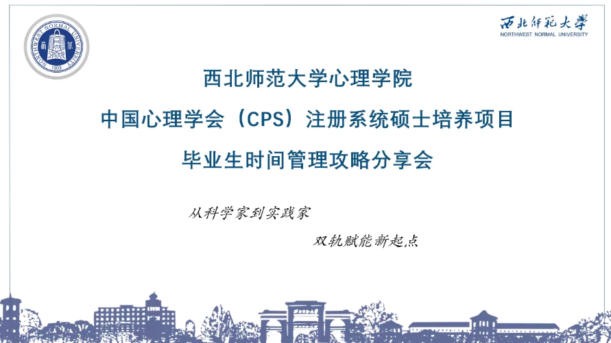 2025年9月29日,由365上市公司临床心理专硕培养项目主办的“毕业学员时间大师攻略”分享会首次圆满结束。本次分享会邀请于西北师大注册系统硕士培养项目毕业的优秀毕业生,包括现西北师大应用心理专业在读博士刘语晗、兰州理工大学心理发展指导中心专职心理教师姚有娟、西北师大应用心理专业在读博士衣致宇三位老师担任主讲。分享会旨在帮助参与项目的学生,尤其是研三同学做好时间管理,实现从科学家到实践家,双轨赋能奋力前行。