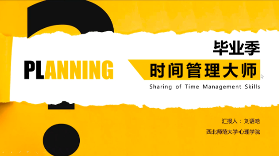 面对当下研三同学面对参加硕士系统的学习和准备毕业论文的双重压力,刘语晗老师结合自己当时运用的认知行为疗法中的技术,教大家运用四象限将事情分为重要紧急、重要不紧急、不重要紧急、不重要不紧急四种。先解决重要紧急的,再根据排序注意完成,而不重要不紧急的事情则可以根据自己的需求来做选择。通过增强对事情和日程的规划,让一切按部就班的顺利完成。