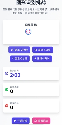 阴晴圆缺:注意力大挑战 挑战规则 1.根据给出的圆环图形,找到和它一模一样的圆环图形 2.点击右方文件开始挑战 |