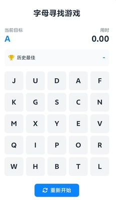 字母捕手:字母版舒尔特挑战 挑战规则 1.这是一个5*5的表格,需要参与者以最快速度依次找到a-y 2.点击右方文件开始挑战 |