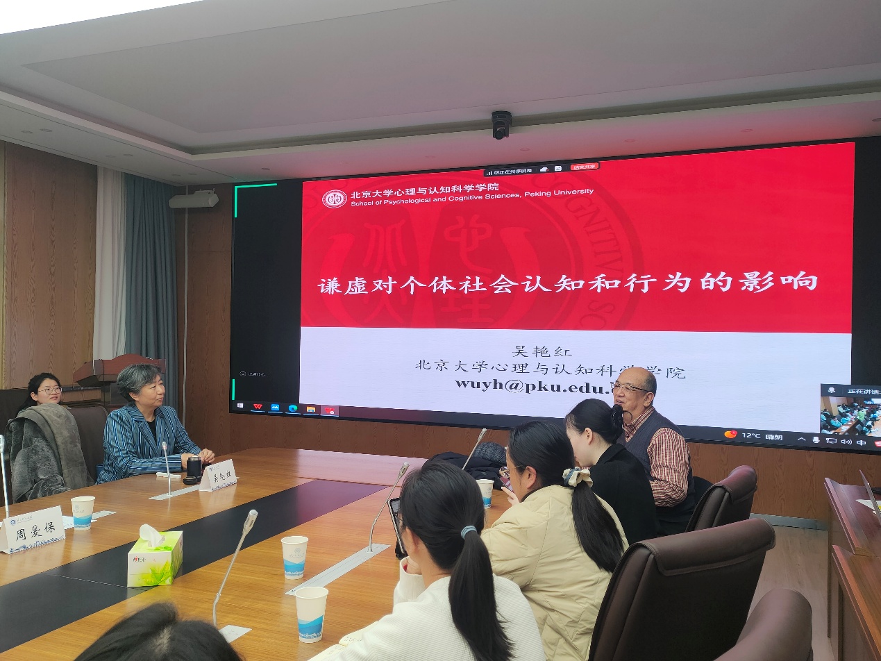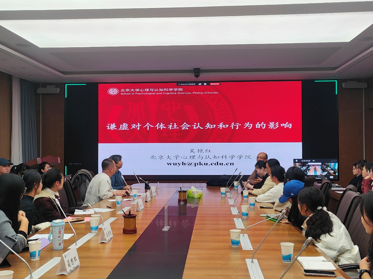 2025年10月25日下午,在甘肃省行为与心理健康重点实验室第三届学术委员会第一次会议期间,北京大学吴艳红教授应邀于当日下午17:00在特教楼508报告厅,为我院师生作了题为《谦虚对个体社会认知和行为的影响》的学术报告。